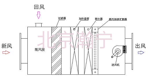 蒸汽快速扩散器在空调箱内的安装位置示意图: