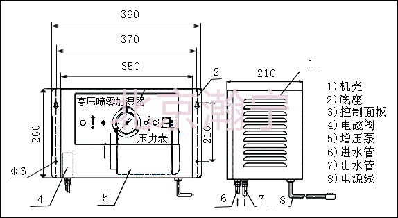 (1)环境温湿度:加湿器主机1-40℃ ≤80%RH;喷雾装置 1-80℃