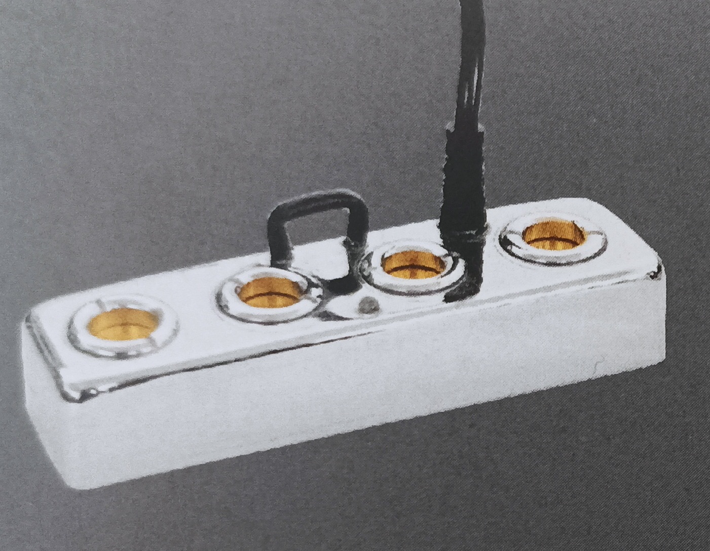 四头超声波雾化模块 型号:M-041 ★工作电压:AC36 ★工作电流:2.55~2.85A ★雾化量:≧1200ml/h ★换能片规格: 1.7MHz,20mm,镀钛片 ★换能片安装方式:弹簧压接式 ★外壳材料及尺寸: 铜电镀,155×44×29mm ★缺水保护方式:电容感应式 | 五头超声波雾化模块 型号:M-050 ★工作电压:AC36V ★工作电流:3.8~4.0A ★雾化量:≧1500ml/h ★换能片规格: 1.7MHz,20mm,镀钛片 ★换能片安装方式:弹簧压接式 ★外壳材料及尺寸: 铜电镀,Φ85×30mm ★缺水保护方式:电容感应式 | 六头超声波雾化模块 型号:M-060 ★工作电压:DC48V ★工作电流:2.5~2.8A ★雾化量:≧1800ml/h ★换能片规格: 1.7MHz,20mm,镀镍 ★换能片安装方式:弹簧压接式 ★外壳材料及尺寸: 不锈钢,153×88×27.5 ★缺水保护方式:电容感应式 | 十头超声波雾化模块 型号:M-0130 ★工作电压:DC48V ★工作电流:4.3~4.8A ★雾化量:≧3000ml/h ★换能片规格: 1.7MHz,20mm,镀镍 ★换能片安装方式:弹簧压接式 ★外壳材料及尺寸: 不锈钢,253×88×27.5 ★缺水保护方式:电容感应式 |